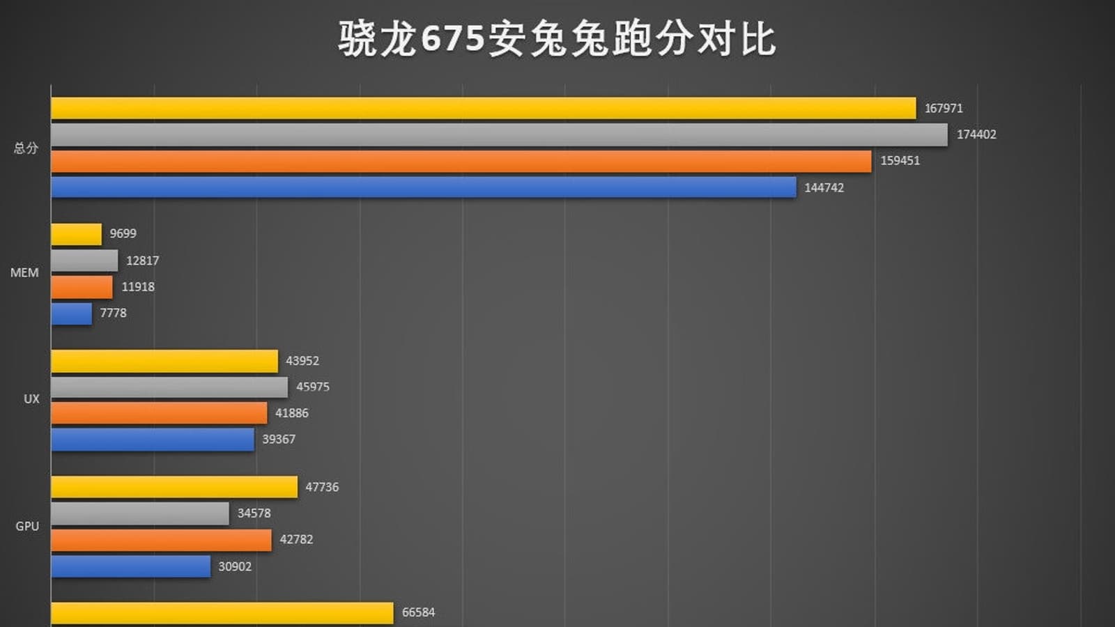 На графике выше видно, что по сумме баллов Snapdragon 675 обходит такие платформы, как Snapdragon 660, Snapdragon 670 и даже Snapdragon 710. Общее лидерство Snapdragon 675 обусловлено лидерством в трех разделах бенчмарка — UX, памяти и CPU. Последняя, как видно, вносит наибольший вклад. Но вот по части возможностей графического процессора Snapdragon 675 едва обходит уже достаточно пожилую Snapdragon 660, а двум другим платформам и вовсе прилично уступает. Получается, Qualcomm сделала платформу с отличным центральным процессором, но слабым видеоядром. Да, конечно, возможностей Adreno 612, примененного в Snapdragon 675, будет хватать для большинства игр, но вряд ли кто-то мог ожидать, что именно GPU станет узким местом новой SoC.