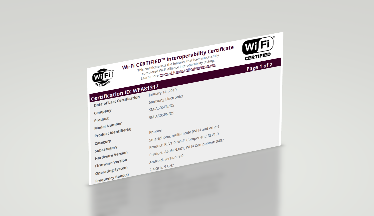 Теперь это же устройство появилось в базе данных организации Wi-Fi Alliance, которая занимается сертификацией устройств с поддержкой беспроводных сетей, основанных на стандарте IEEE 802.11 и работающих в диапазонах 2,4 или 5 ГГц. Это указывает на то, что выход смартфона состоится в самое ближайшее время.