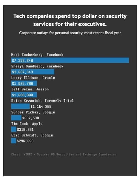 К примеру, Apple потратила на обеспечение безопасности Тима Кука 310 000 долларов, и это далеко не самая большая сумма.