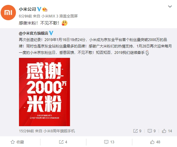 Несмотря на такой успех, компания Xiaomi все равно уступает на рынке смартфонов Китая различным компаниям, включая Huawei. Чтобы усилить позиции компании на родном рынке, официальный магазин Xiaomi и Jingdong установил привлекательные цены на различные товары в честь Китайского Нового года. Кроме того, на некоторые продукты действуют дополнительные скидки по 30 долларов.