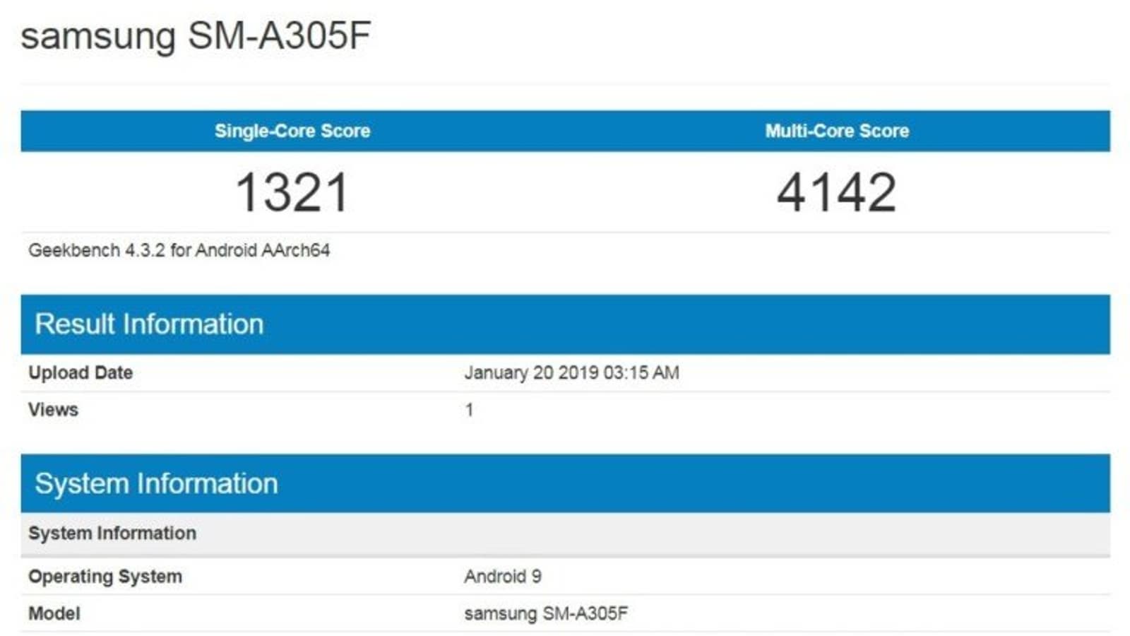 В новом поколении смартфонов Samsung Galaxy A окажется девять моделей, а Galaxy A30, наряду c Galaxy A10 и A20, будет открывать линейку. Тем интереснее оценить характеристики этой бюджетной модели среднего уровня. Теперь это можно сделать благодаря тому, что аппарат засветился в базе данных Geekbench.