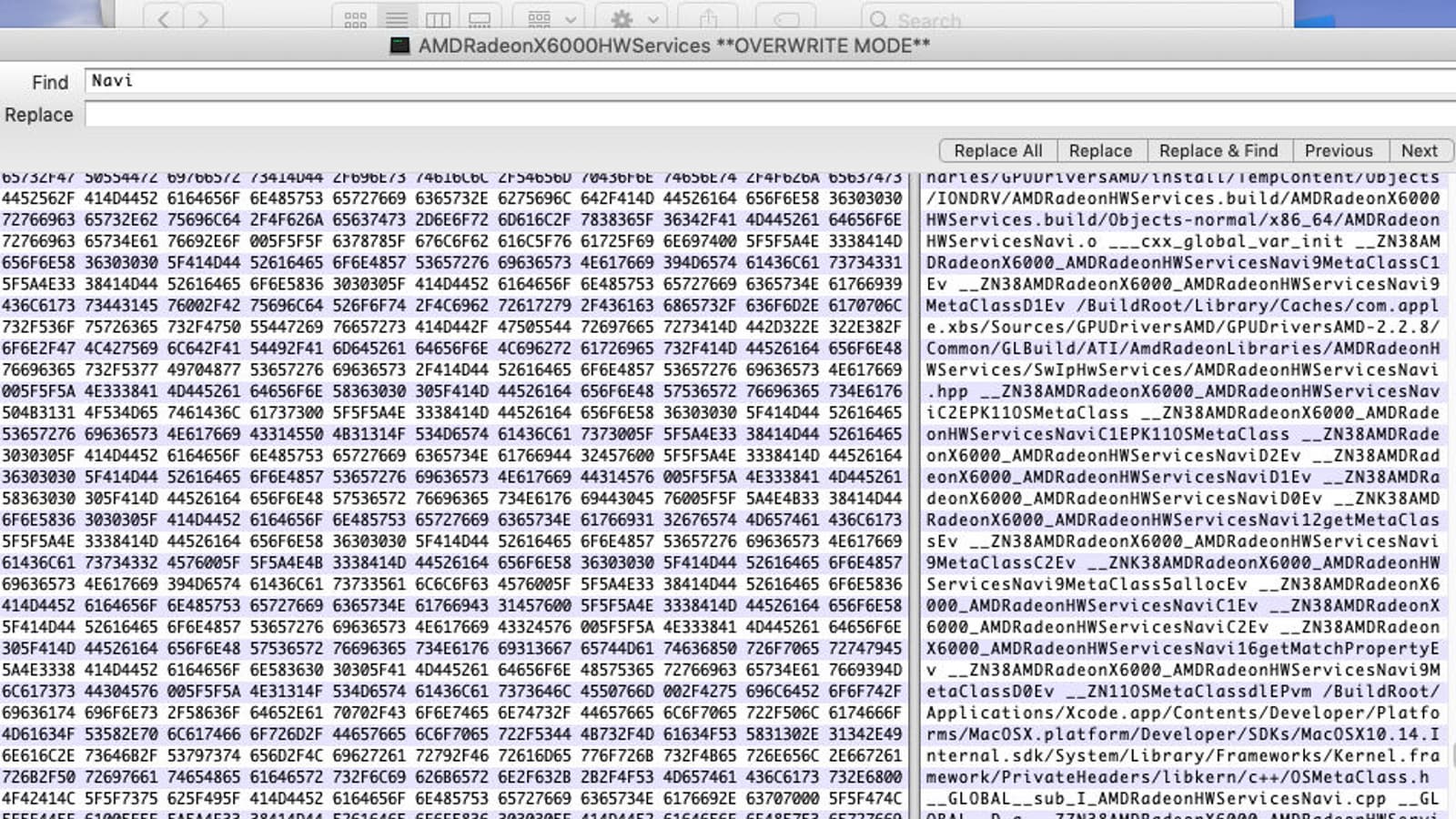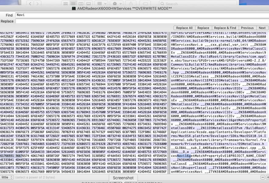 Косвенным подтверждением близкого анонса можно назвать и обнаруженные упоминания карт Navi в исходном коде обновления macOS Mojave. Если точнее, в файле под названием AMDRadeon6000HWServiceskext есть упоминания Navi 16, Navi 12, Navi 10 и Navi 9. Пока сложно сказать, являются ли эти названия кодовыми именами GPU или же непосредственно видеокарт.