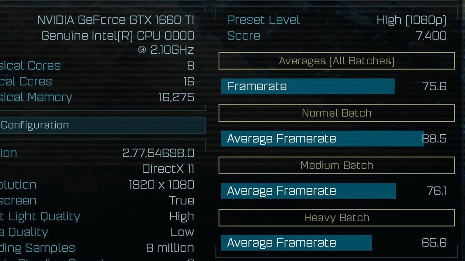 Итак, в тесте Ashes of the Singularity набирает 7400 баллов в режиме High 1080p, что на 1200 баллов выше, чем у GTX 1060, то есть новинка примерно на 20% быстрее. Но это неофициальные результаты, да и сам бенчмарк Ashes of the Singularity — не лучший вариант для тестов, так что лучше подождать. Ибо если это правда, то получается, что GTX 1660 и вовсе будет на уровне предшественницы, что было бы очень странно.