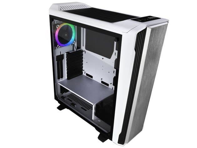 На передней панели можно закрепить три вентилятора типоразмера 120 мм или два вентилятора типоразмера 140 мм. Точно такие же возможности предлагает верхняя плоскость корпуса. Там закреплен 120-миллиметровый вентилятор с RGB-подсветкой.