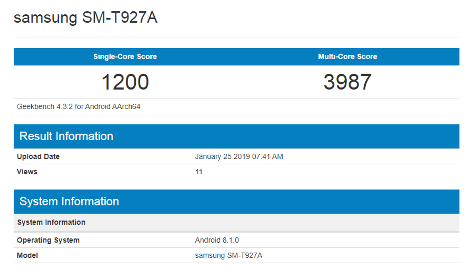 Теперь же в базе данных популярного тестового пакета Geekbench начали появляться записи об устройстве Samsung, которое проходит под модельным номером SM-T927A. Ресурс Slashleaks утверждает, что под этим номером скрывается именно новый планшет Samsung Galaxy View 2.