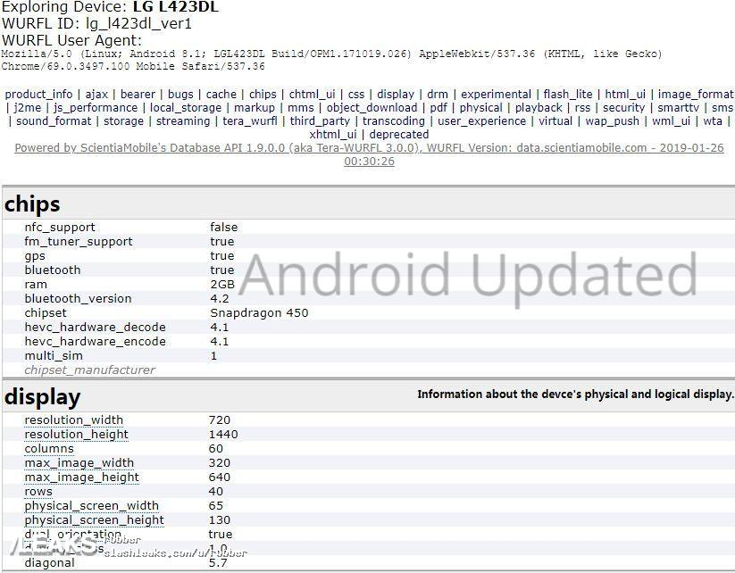 В Сети появись первые подробности о новом бюджетном смартфоне компании LG, который проходит под модельным номером LG L423DL.