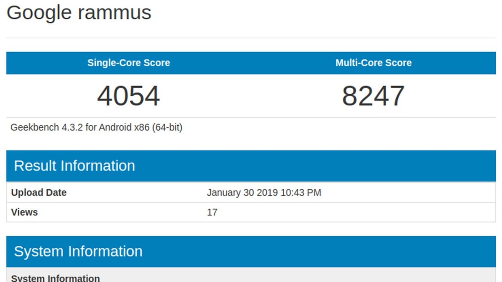 Некое мобильное устройство Google под кодовым обозначением Rammus впервые было замечено в бенчмарке Geekbench в октябре прошлого года. Та версия имела процессор Intel Core m3-8100Y, 4 ГБ оперативной памяти и ОС Android 7.1.1. Сейчас Rammus вновь засветился в Geekbench, но характеристики у него уже иные — получше.