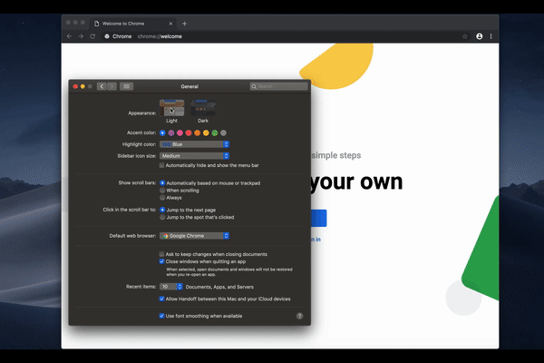 Новая тема появилась в ранней тестовой сборке Chrome 74, выпущенной в рамках экспериментального канала Canary. На данный момент тёмная тема активируется абсолютно автоматически, просто подстраиваясь под тему, которая используется в операционной системе. Если пользователь переключает тему в ОС, это сразу отражается и на браузере. Дополнительных настроек на этот счёт нет.