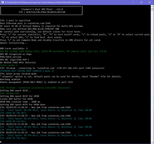 Пользователь Reddit опубликовал скриншот, который показывает, что новинка AMD демонстрирует производительность в 90 MH/s при добыче Ethereum.