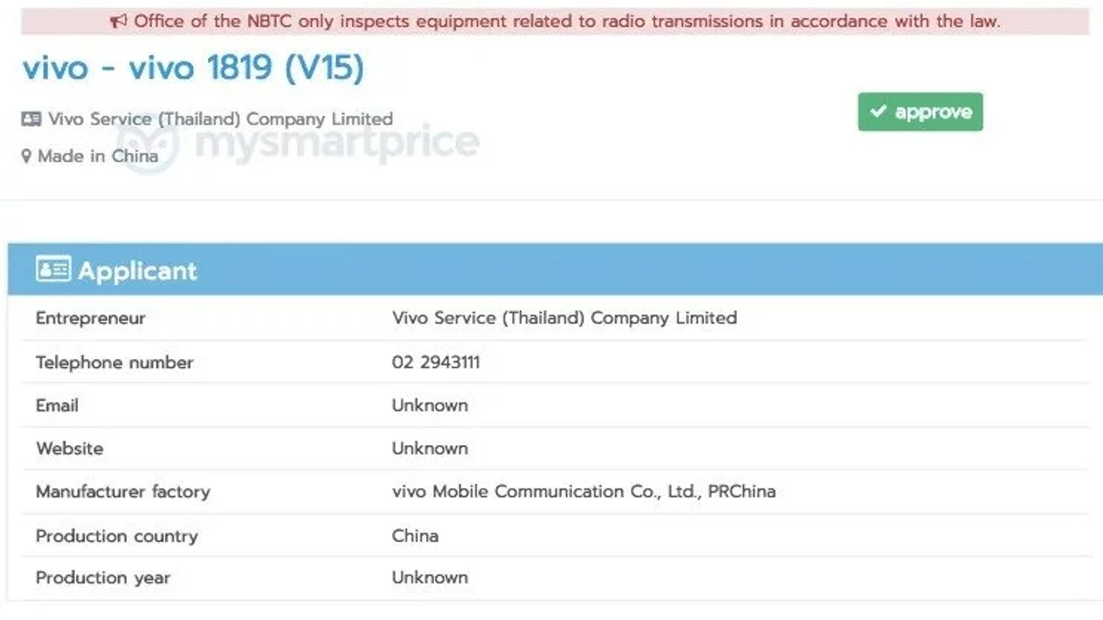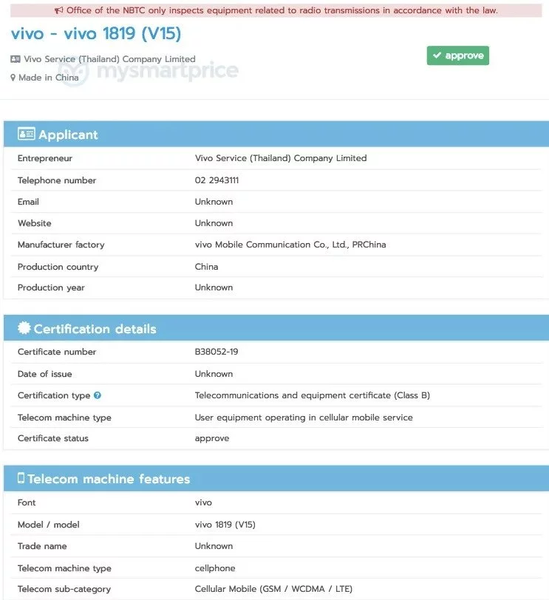Национальная комиссия по телерадиовещанию и телекоммуникациям (The National Broadcasting and Telecommunications Commission) Тайваня выдала необходимый сертификат смартфону Vivo V15.