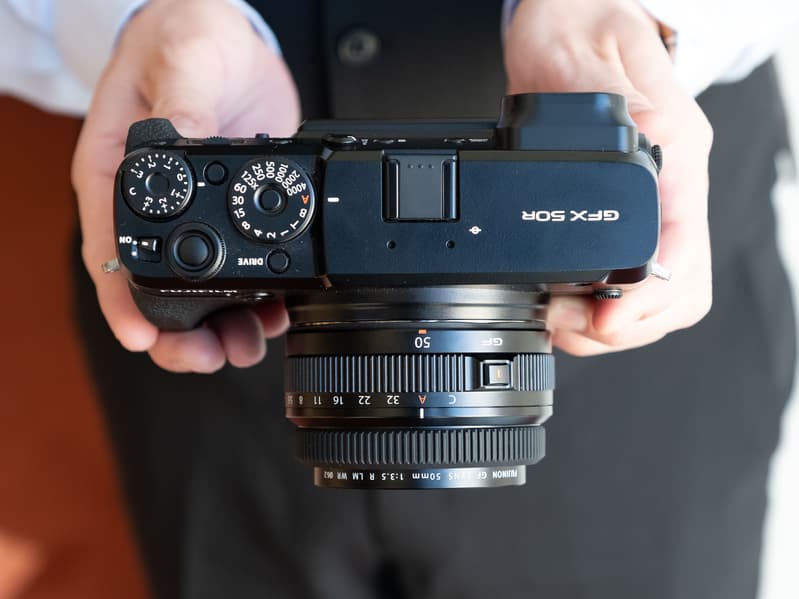 Новинка показана на камере GFX 50R. Учитывая размеры датчика, кроп-фактор составляет 0,79х, то есть ЭФР этого объектива составляет 40 мм. Оптическая схема из девяти элементов в шести группах включает один асферический элемент. Обращает на себя внимание небольшой передний элемент и в целом — небольшие размеры изделия.
