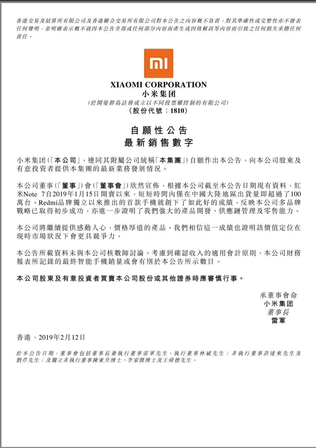 Xiaomi редко публикует официальные сообщения на фирменном бланке за подписью гендиректора Лея Цзуня (Lei Jun), но в этот раз все случилось именно так. И тому есть хороший повод: за полмесяца компания продала свыше 1 миллиона смартфонов Redmi Note 7. Для сравнения: за весь прошлый год на огромном (и даже растущем!) рынке Индии Apple смогла продать всего 1,6 миллиона смартфонов iPhone. Понятно, что модели несравнимые по причине разницы аудиторий и цен, но показателен сам факт: только на домашнем рынке Xiaomi продает столько же Redmi Note 7 за месяц, сколько Apple всех iPhone в отдельно взятой стране за год.