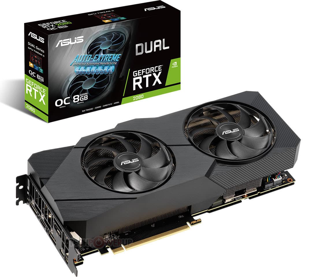 Компания Asus представила серию 3D-карт GeForce RTX 2080 Dual EVO, включающую две модели, разогнанные в заводских условиях. Эти карты занимают нишу между сериями RTX 2080 Dual и RTX 2080 ROG Strix. Они оснащены массивной системой охлаждения, из-за которой занимают в корпусе ПК три слота.