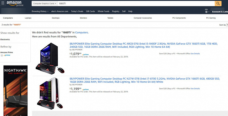 Источник опубликовал свидетельство того, что в продаже замечены компьютеры производства Ibuypower, в конфигурацию которых входят 3D-карты GeForce GTX 1660 Ti.