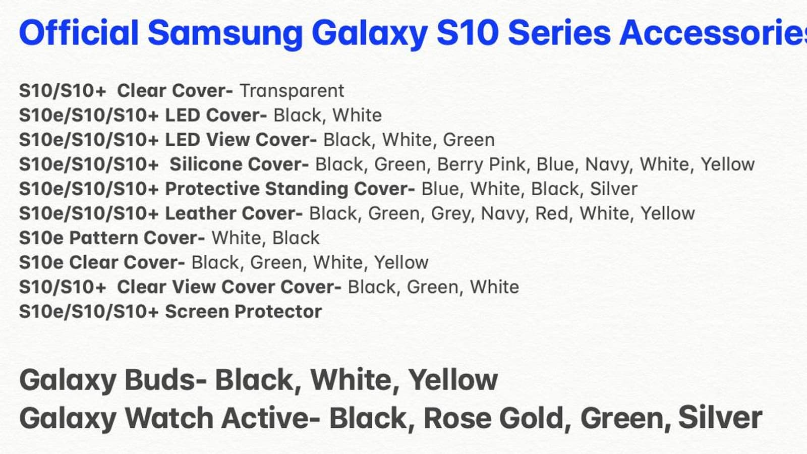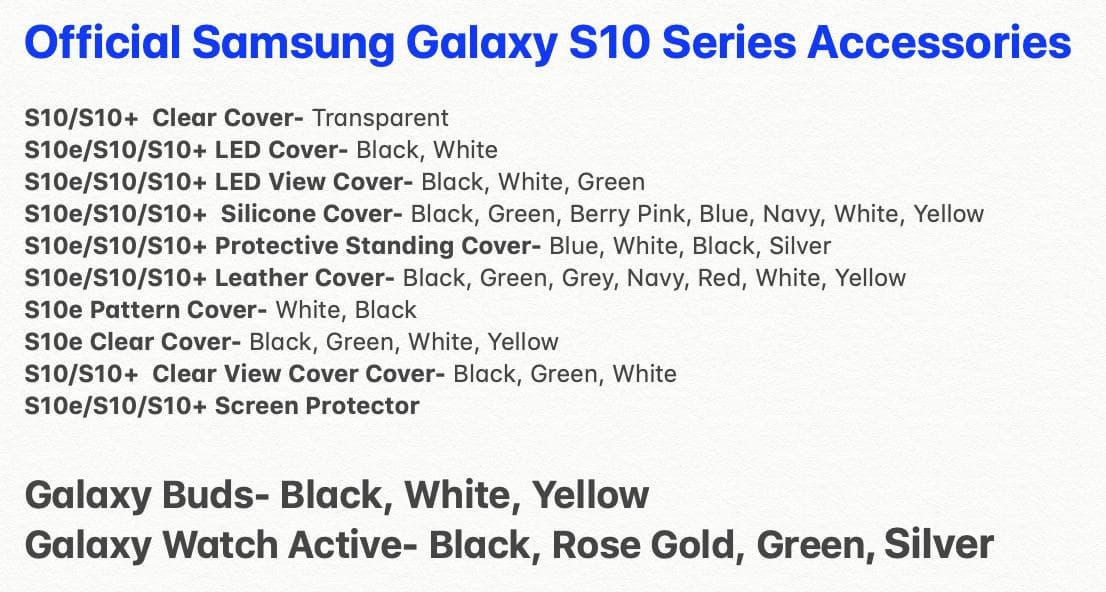 20 февраля Samsung представит новые флагманские смартфоны Galaxy S10, и мы уже неоднократно имели возможность увидеть их. А сейчас в распоряжении источника оказались изображения официальных аксессуаров для новинок.