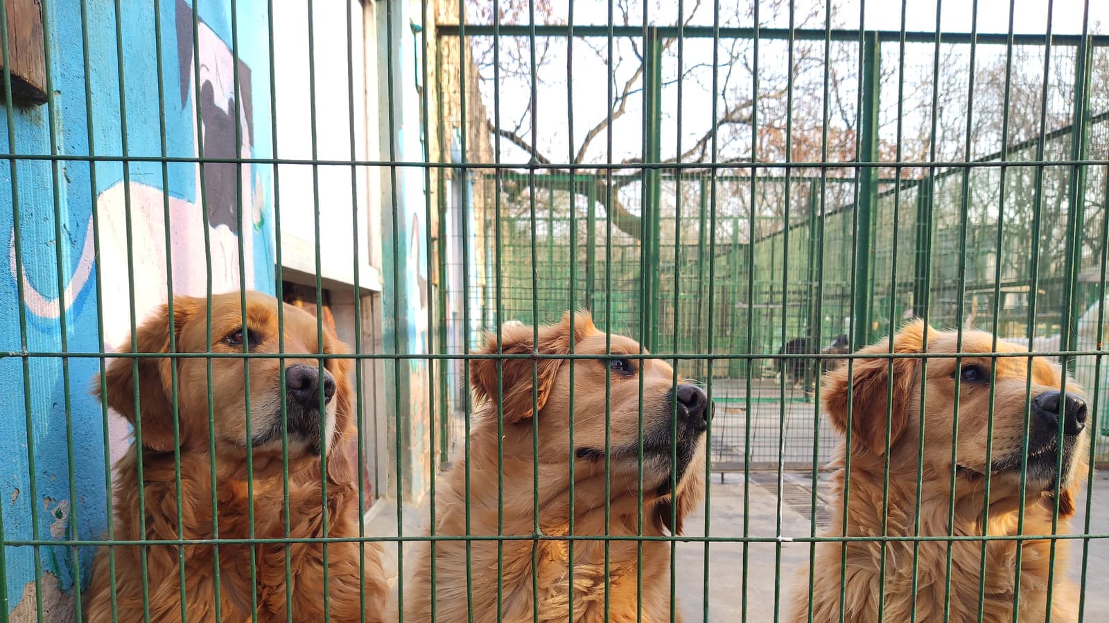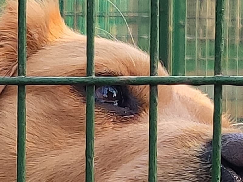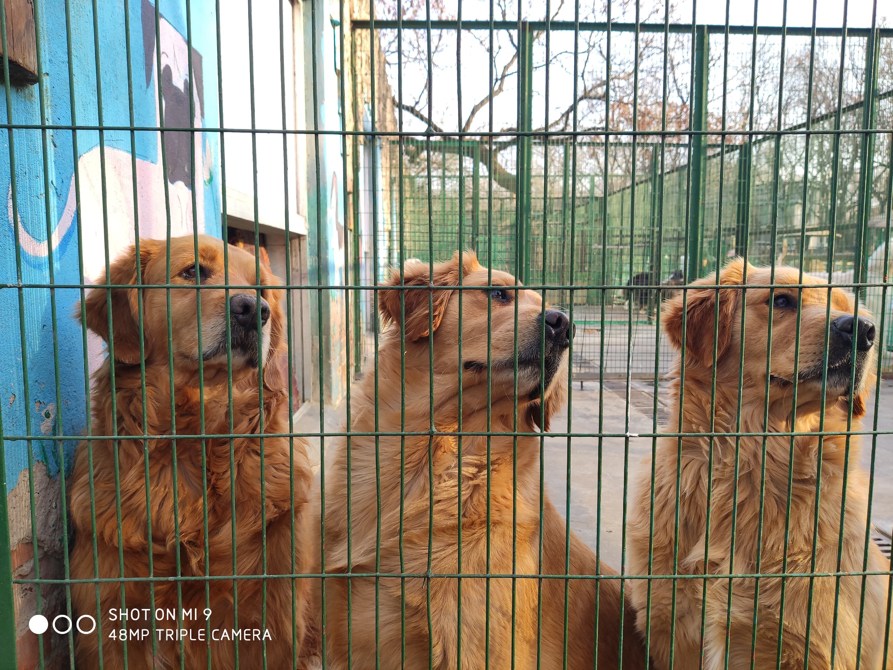 Разрешение снимка настолько велико, что при приближении можно рассмотреть отражение Вэн Чуаня, которое запечатлено в глазу одного из золотистых ретриверов.