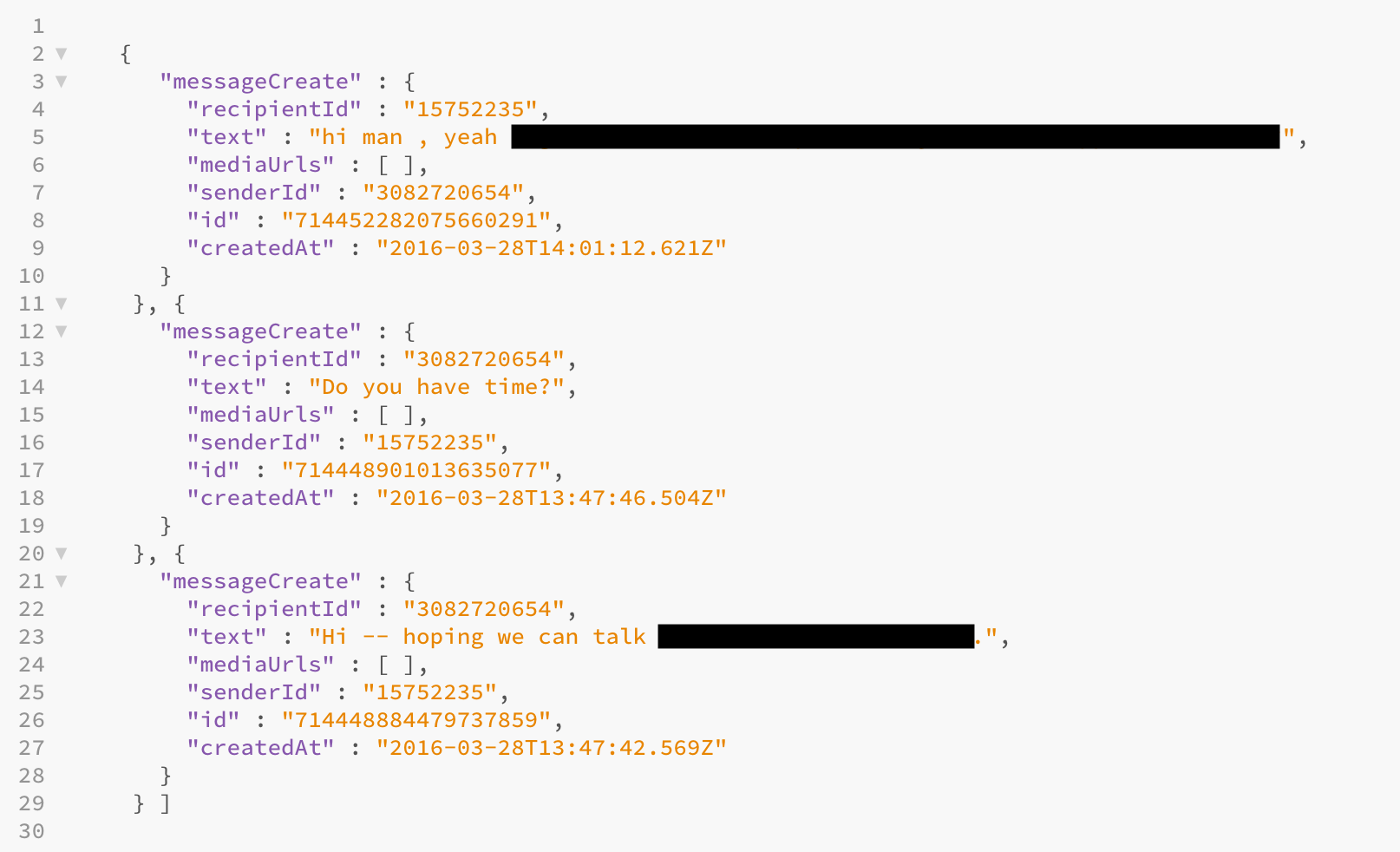 Twitter продолжает хранить личные сообщения и информацию даже от тех учётных записей, которые были отключены или заблокированы. Саини обнаружил «многолетние» сообщения в файле из архива с данными отключённого аккаунта.