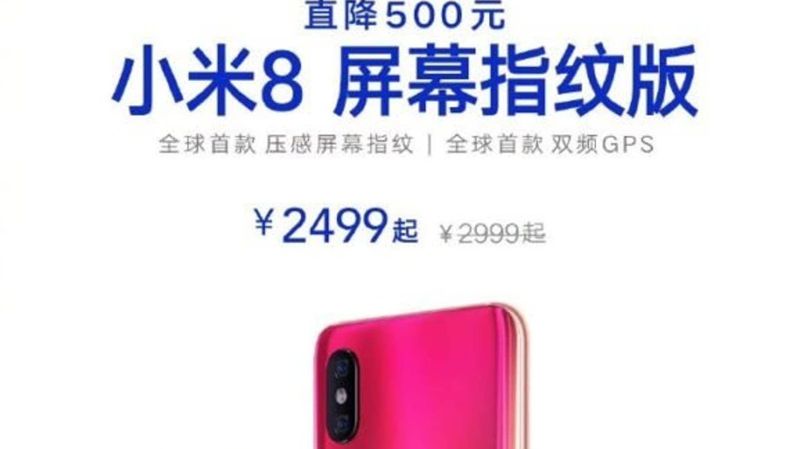 Несмотря на такое обещание, удешевление Xiaomi Mi 8 оказалось грандиозным — сразу на 74 доллара. Оно касается только модели с подэкранным сканером отпечатков пальцев, поскольку её прежняя стоимость на неё превышала стартовую цену на Xiaomi Mi 9 в 445 долларов. Теперь модель можно купить онлайн и в обычных розничных магазинах Xiaomi по цене 371 доллар за версию с 6 ГБ ОЗУ и 128 ГБ флэш-памяти и 430 долларов за версию с 8 ГБ ОЗУ и 128 ГБ флэш-памяти. Пока удешевление коснулось только Китая, но постепенно охватит и другие рынки.