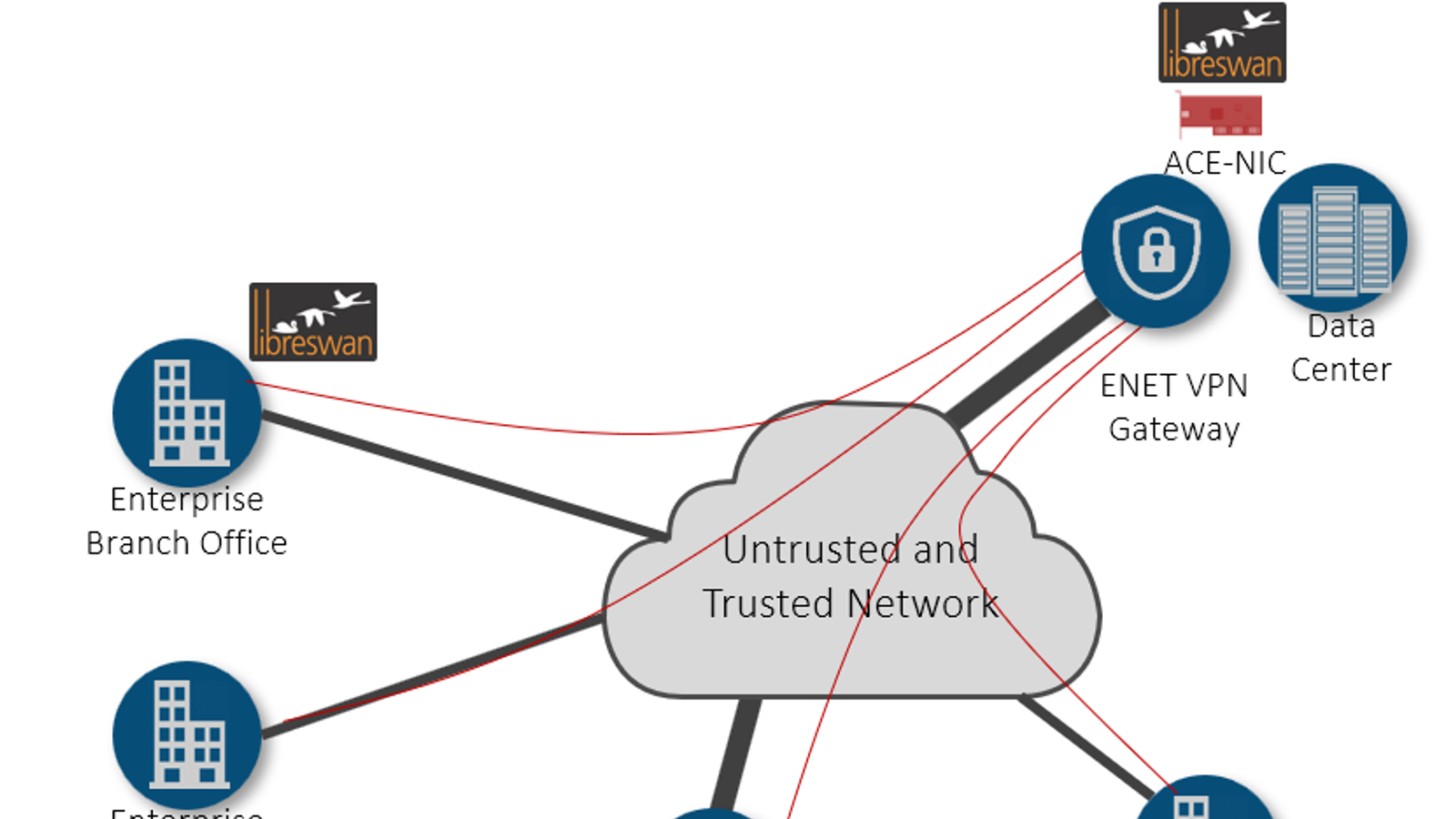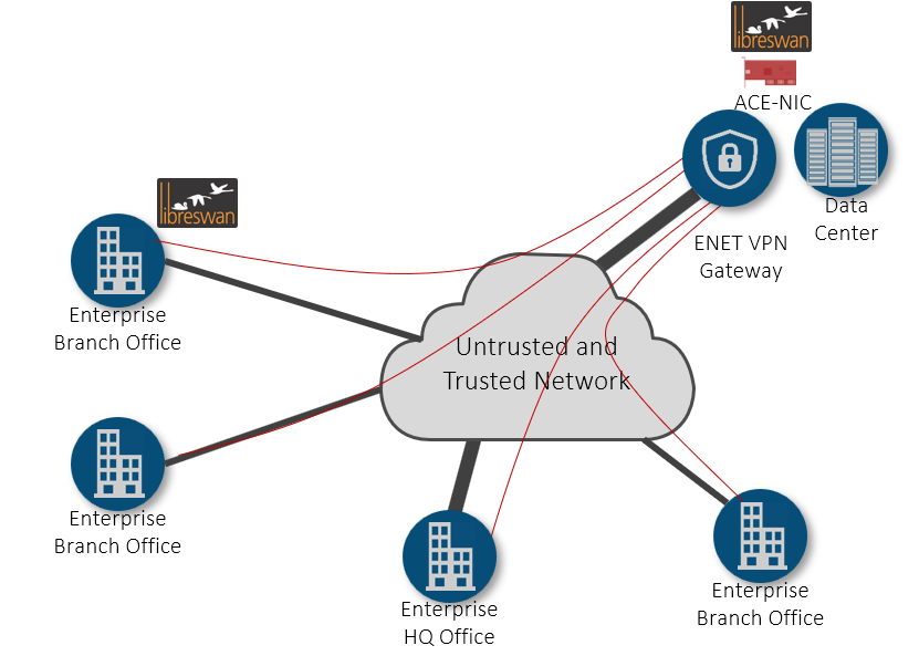 По словам разработчика, шлюз ENET IPSec VPN может быть расширен для обслуживания IoT путем объединения многочисленных VPN-туннелей с низкой пропускной способностью, а также может быть легко включен в высокоскоростную инфраструктуру SD-WAN.