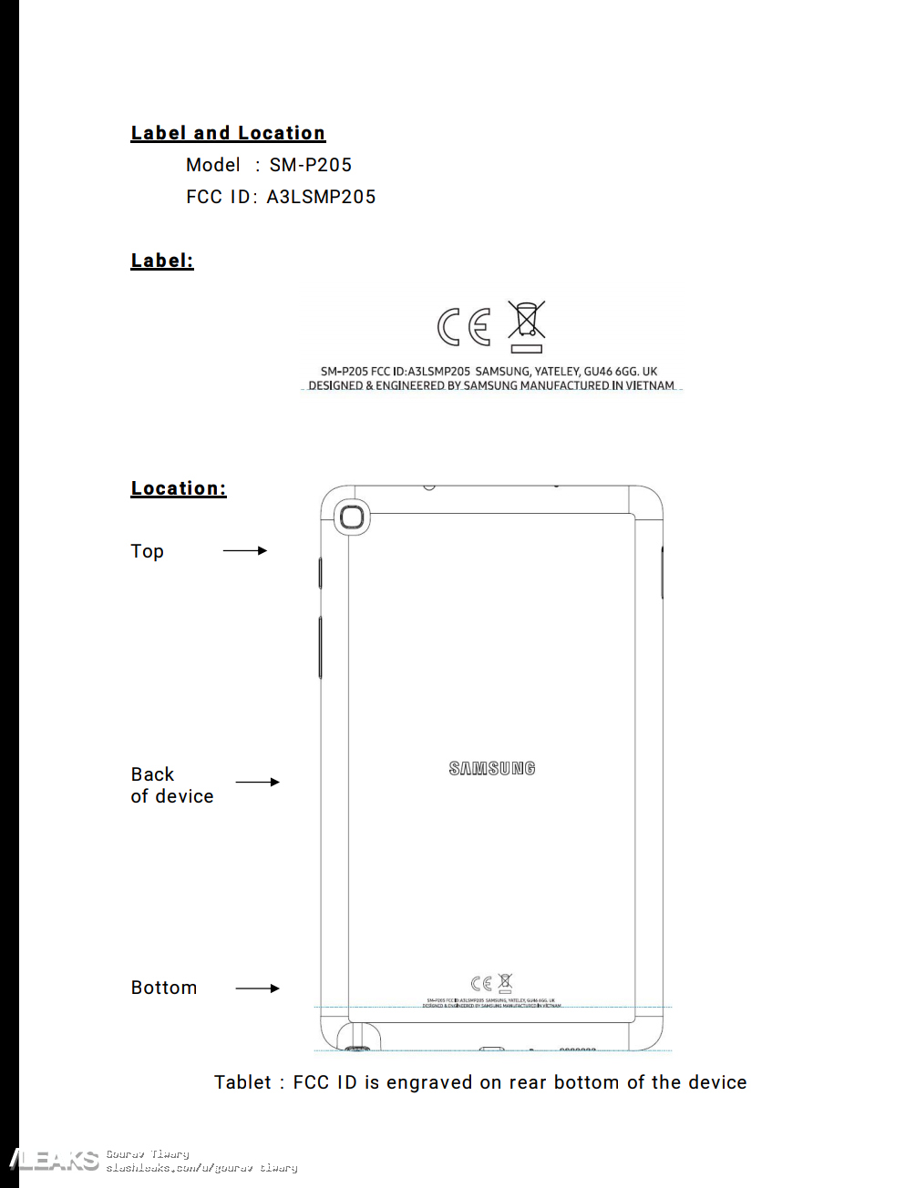 На сайте Федеральной комиссии по связи (FCC) США был опубликован чертеж задней панели нового планшета компании Samsung, который проходит под модельным номером Samsung SMP205.