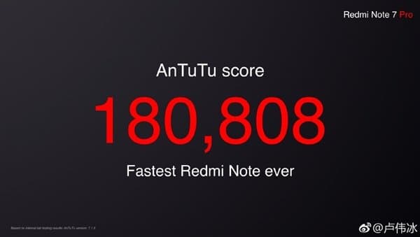 Как и ожидалось, сегодня Xiaomi официально представила смартфон Redmi Note 7 Pro. Новинка представлена с характеристикой «самого быстрого Redmi Note в истории». Это заключение сделано на базе результатов теста модели в AnTuTu: в нем смартфон набирает чуть больше 180 000 баллов.