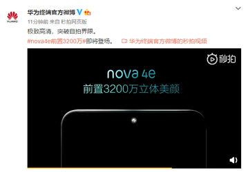 Первый тизер смартфона Huawei Nova 4e посвящен 32-мегапиксельной фронтальной камере
