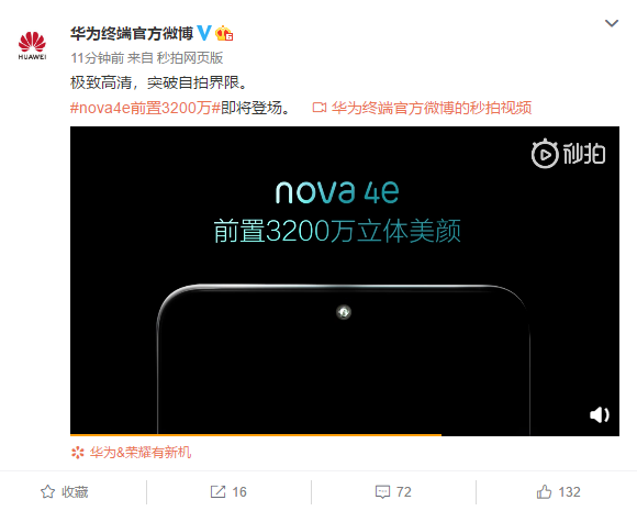 20 марта прошлого года Huawei представила смартфон Nova 3e (второе название модели – P20 Lite), поэтому совершенно закономерно, что премьера его преемника должна состояться в ближайшее время. В Сети уже даже появилась первая тизерная картинка модели.