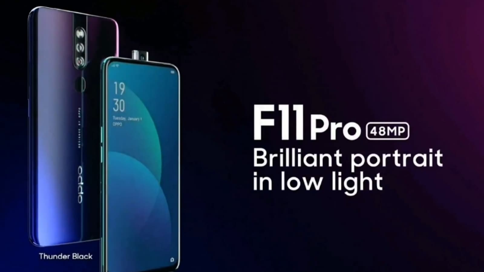 Основная камера включает в себя датчики разрешением 48 и 5 Мп, но Oppo не указывает производителя первого. Фронтальная камера тут имеет разрешение 16 Мп и расположена она на выезжающем модуле, который и является основной особенностью смартфона. Из остального можно отметить два цветовых варианта (зелёный и сине-чёрный), поддержку быстрой зарядки и порт micro-USB.