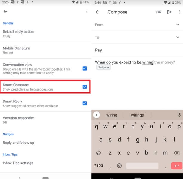 Пока точно известно, что Smart Compose появилась на моделях Pixel прошлого поколения, но источник говорит, что, вероятнее всего, она доступна и на других смартфонах в случае, если установлено ПО Gmail v9.2.3.
