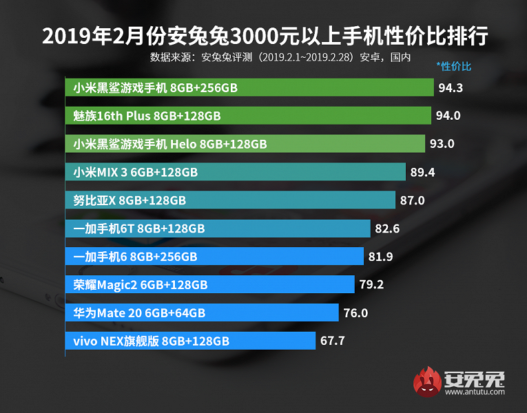 Компания AnTuTu опубликовала несколько рейтингов, в которых собраны лучшие смартфоны из мира Android по соотношению цены и качества (или цены и характеристик) в разных ценовых категориях по состоянию на февраль этого года.