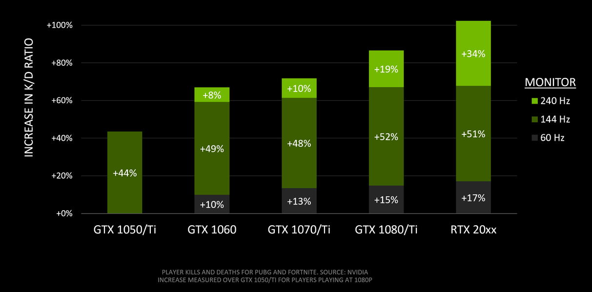 В итоге Nvidia делает вывод, что чем «быстрее» у вас монитор и видеокарта, тем больше шансов стать успешным в Battle Royale.