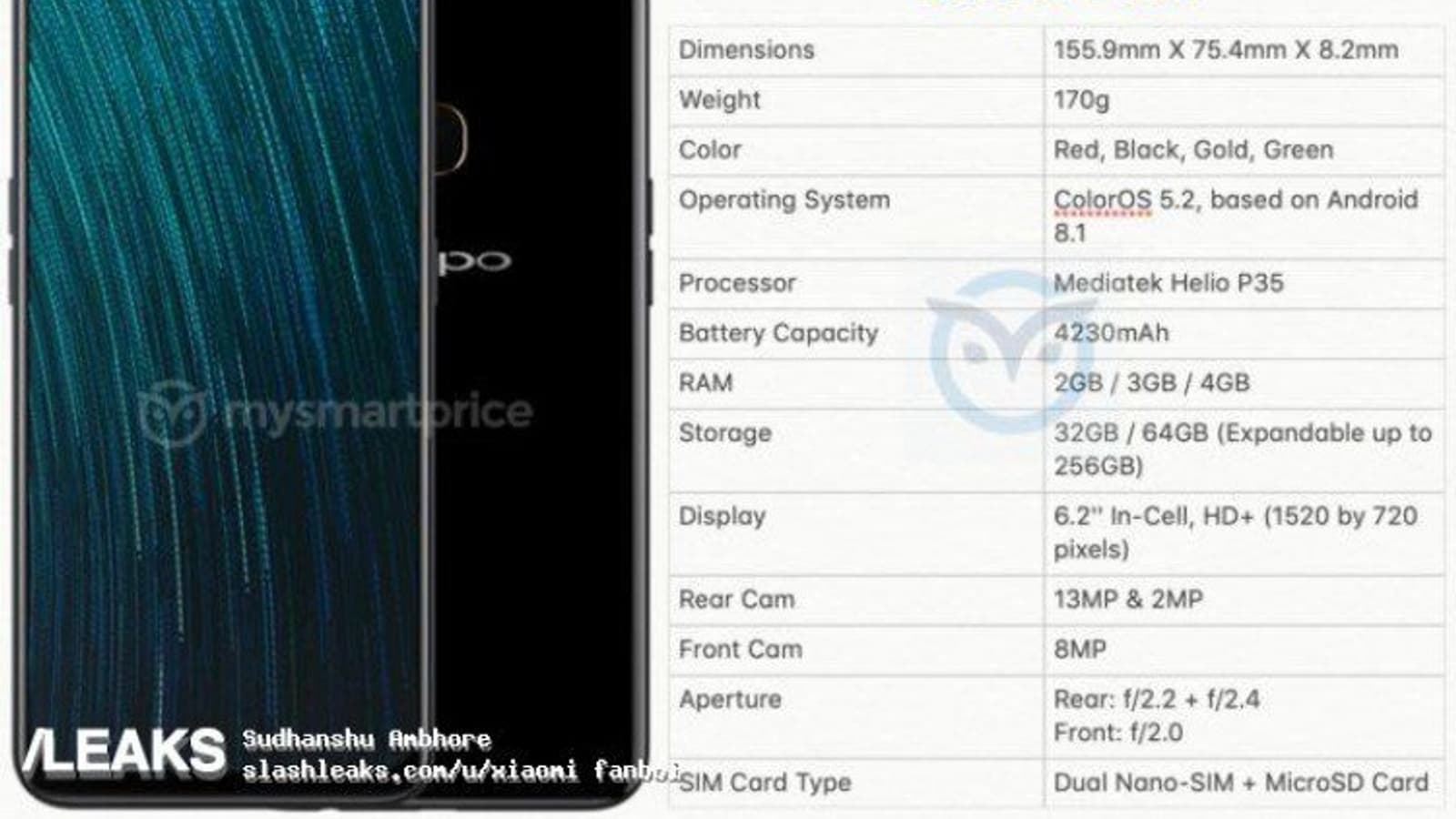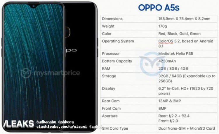 На сайте Slashleaks опубликовали характеристики и изображение смартфона Oppo A5S, который будет относиться к категории бюджетных устройств.