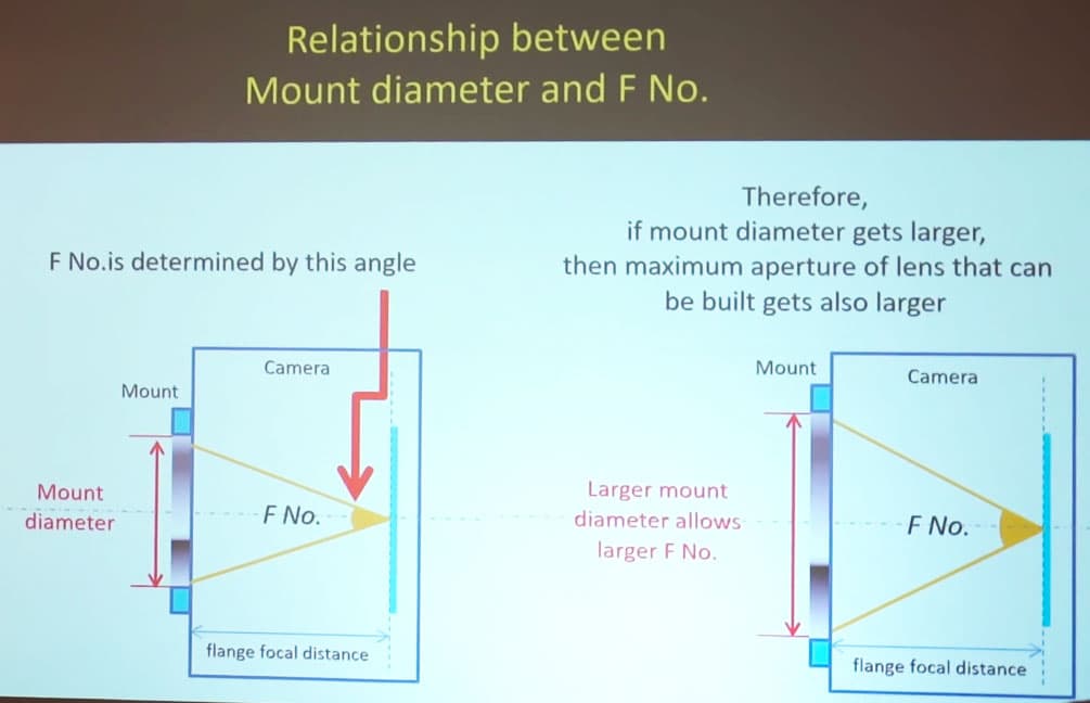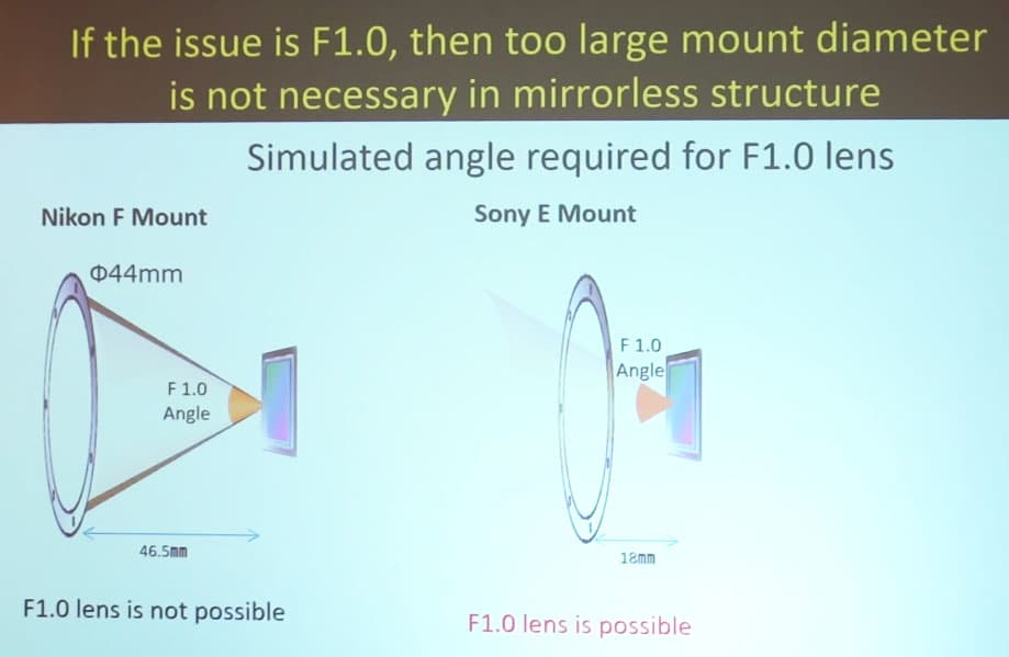 Параметры крепления E позволяют теоретически создать объектив с максимальной диафрагмой f/0,63.