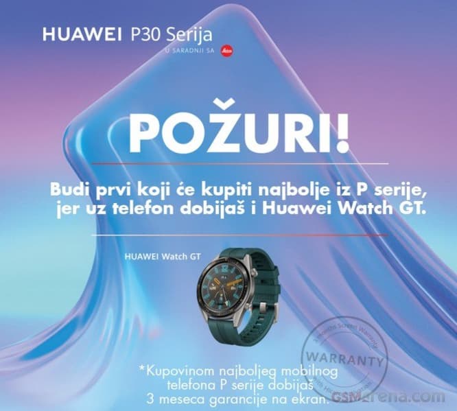 Данную акцию уже начал продвигать сербский оператор Vip mobile, опубликовавший тизер, посвящённый запуску серии Huawei P30. Помимо всего прочего, на нём показаны и новые часы Huawei Watch GT Active. На самом тизере указано просто Huawei Watch GT, но текст внизу страницы гласит Huawei Watch Active.