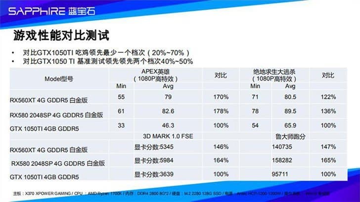 При тех улучшениях, которые произошли с Radeon RX 560XT (в сравнении с Radeon RX 560Х), нет ничего удивительного в том, что новинка заметно опережает GeForce GTX 1050Ti и в играх (Apex Legends), и в 3DMark.