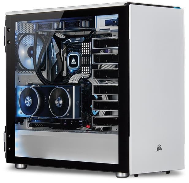 Корпус Crystal Series 680X RGB — дороже. Он стоит 250 евро. За эту сумму покупатель получает корпус размерами 423 x 344 x 505 мм, также рассчитанный на платы типоразмера до ATX. Горизонтальных слотов для карт расширения у него на один больше, чем у Carbide Series 678C. Однако допустимая длина карт меньше — 330 мм. Максимально допустимая высота процессорной системы охлаждения равна 180 мм, длина блока питания — 225 мм.