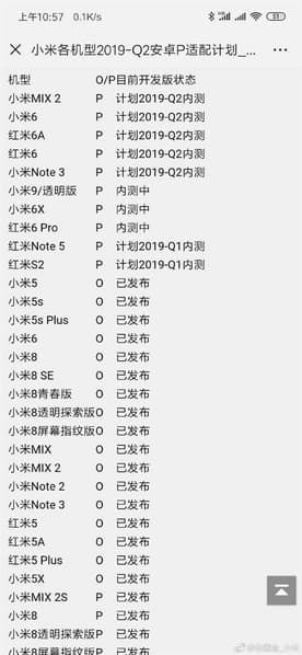 Как видно, в текущем квартале бета-версия MIUI на базе Android 9.0 Pie выйдет для двух смартфонов — Redmi Note 5 и Redmi S2. На следующий квартал запланирован выпуск бета-версии прошивки на базе Android 9.0 Pie для пяти моделей: Xiaomi Mi MIX 2, Mi 6, Redmi 6A, Redmi 6 и Mi Note 3. Следует думать, что финальная глобальная версия ОС для этих же моделей выйдет еще спустя несколько месяцев.