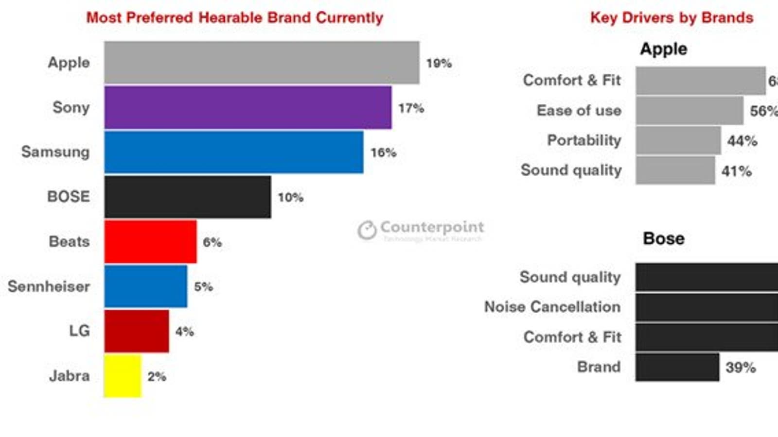 Пользователи AirPods ценят больше всего комфорт ношения и простоту использования. А вот качество звука их волнует меньше. Для сравнения, большинству пользователей наушников Bose важно именно качество звука.