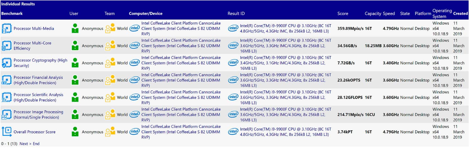 В базе данных теста SiSoft Sandra появился процессор Intel Core i9-9900F. Он не имеет интегрированного графического процессора. По мнению источника, iGPU просто заблокирован, поскольку разборка похожей модели Intel Core i5-9400F подтвердила наличие соответствующего блока на кристалле.