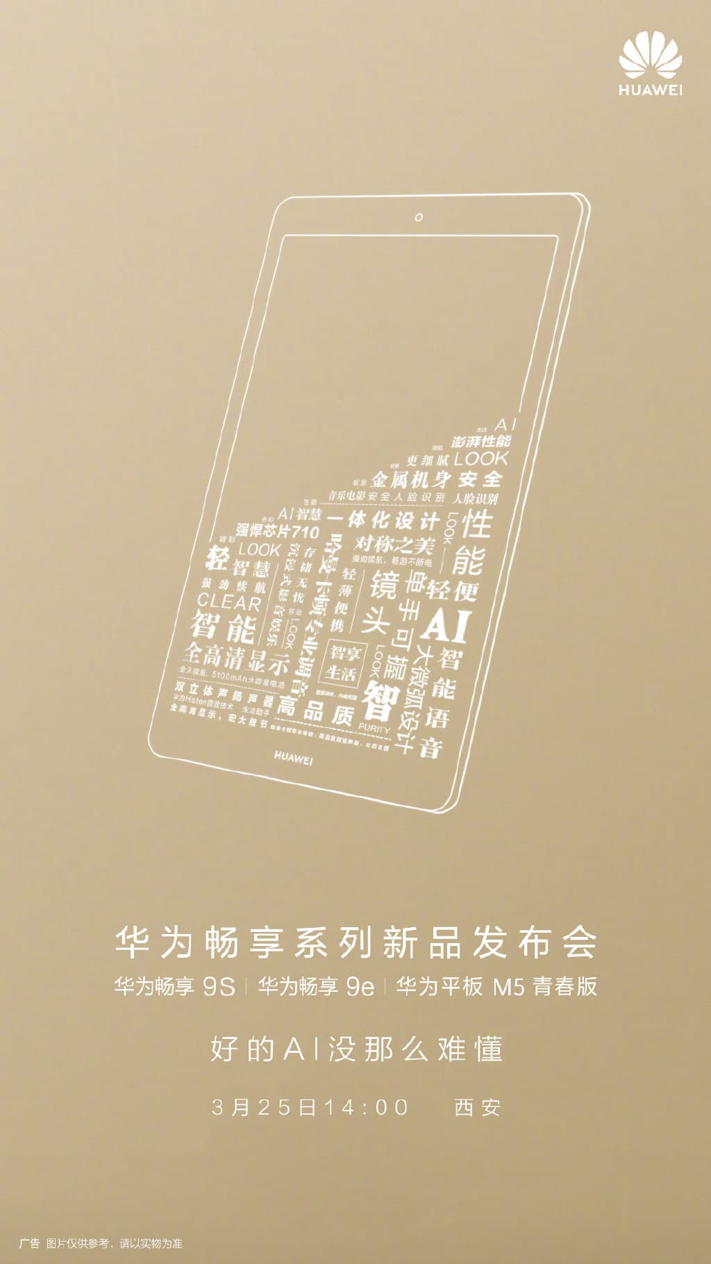 Вместо того, чтобы заставлять пользователей угадывать, о чем идет речь, компания сообщила точные названия и опубликовала рекламные постеры смартфонов Enjoy 9S и Enjoy 9e, а также планшета MediaPad M5 Youth Edition.
