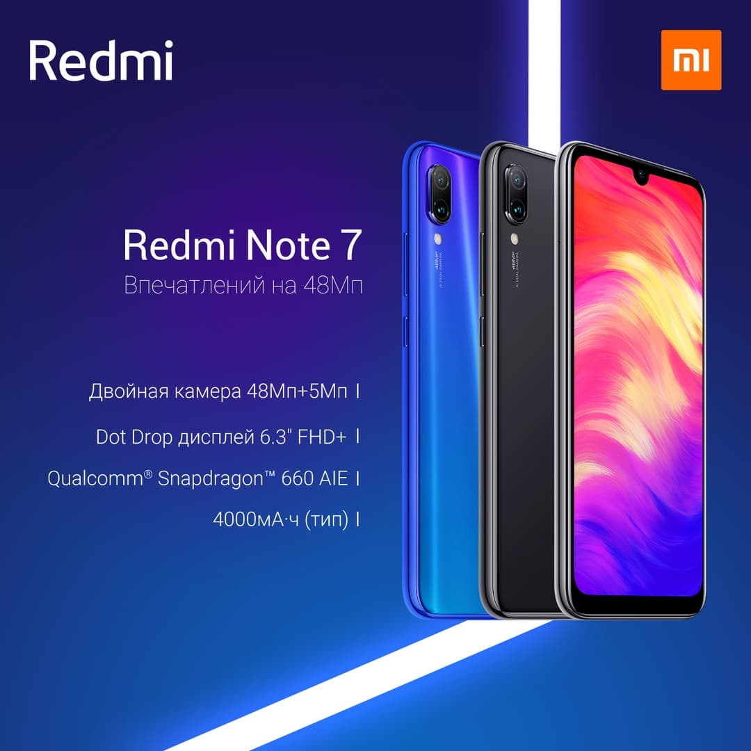 Характеристики Redmi Note 7 остались прежними — экран диагональю 6,3 разрешением 2340 х 1080 пикселей, сдвоенная основная камера с датчиками 48 Мп и 5 Мп, селфи-камера на 13 Мп, SoC Qualcomm Snapdragon 660, аккумулятор ёмкостью 4000 мА·ч с технологией быстрой зарядки Quick Charge 4.