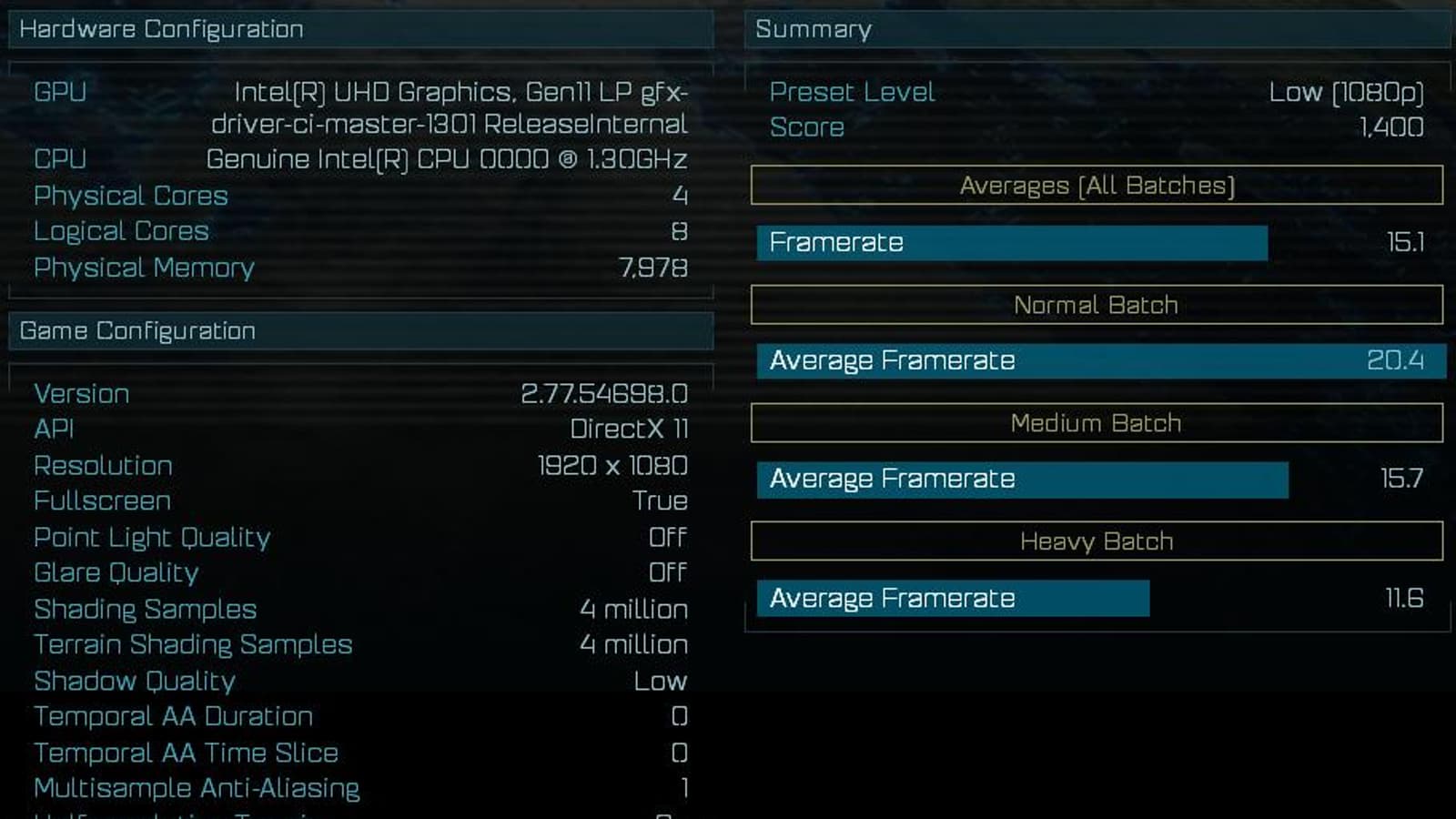 В тесте Ashes of the Singularity неизвестный четырёхъядерный процессор Intel с новым интегрированным графическим ядром показал производительность на уровне видеокарты GeForce MX130. При этом производительность GPU Intel UHD 620 примерно вдвое ниже.