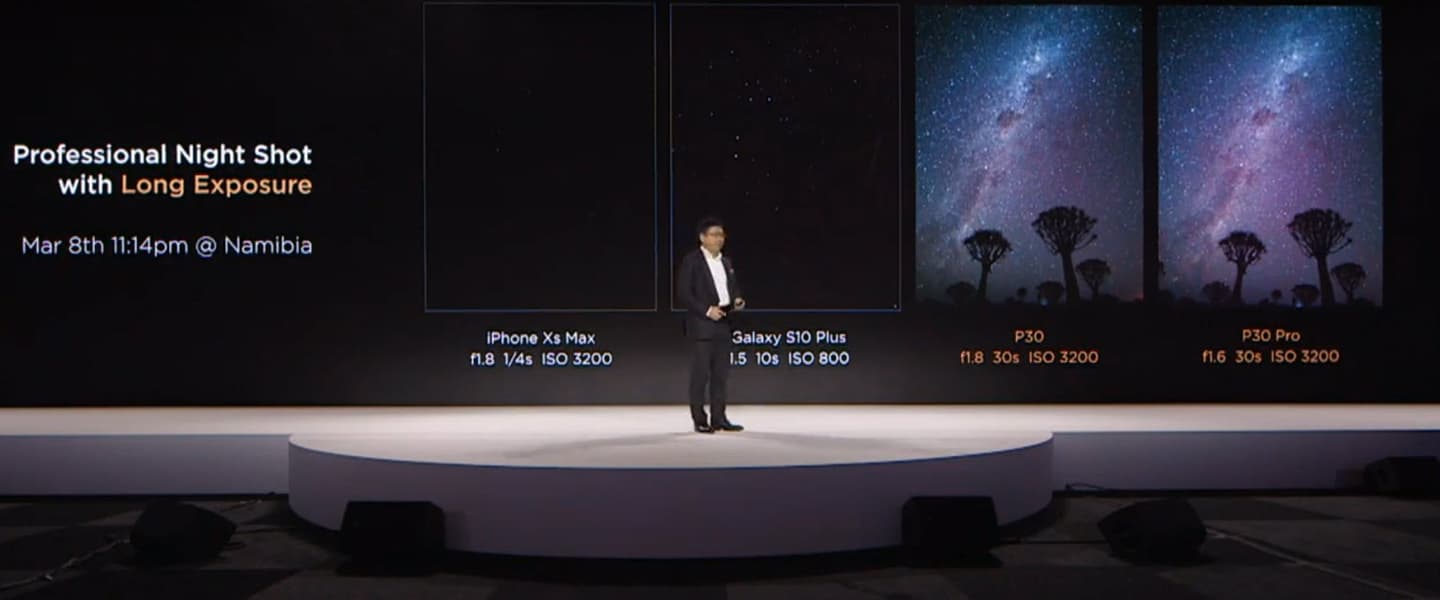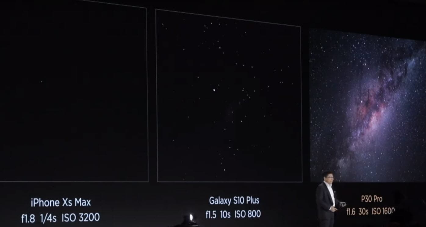 Пересмотрев внимательно презентацию Huawei, мы вынуждены констатировать, что Huawei очень странно сравнивала возможности камер iPhone XS Max, Samsung Galaxy S10+ и Huawei P30 Pro.