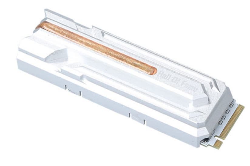 Высокопроизводительные твердотельные накопители типоразмера M.2, поддерживающие NVMe, нуждаются в охлаждении для стабильной работы, поэтому неудивительно, что соответствующие радиаторы можно встретить в комплекте системных плат со слотами M.2. Некоторые производители сразу устанавливают радиаторы на свои SSD. Примером служит новинка компании Galaxy, показанная на иллюстрациях. Накопитель HOF M.2 PCIe снабжен алюминиевым радиатором с тепловой трубкой, которая напрямую контактирует с контроллером и микросхемами флеш-памяти.