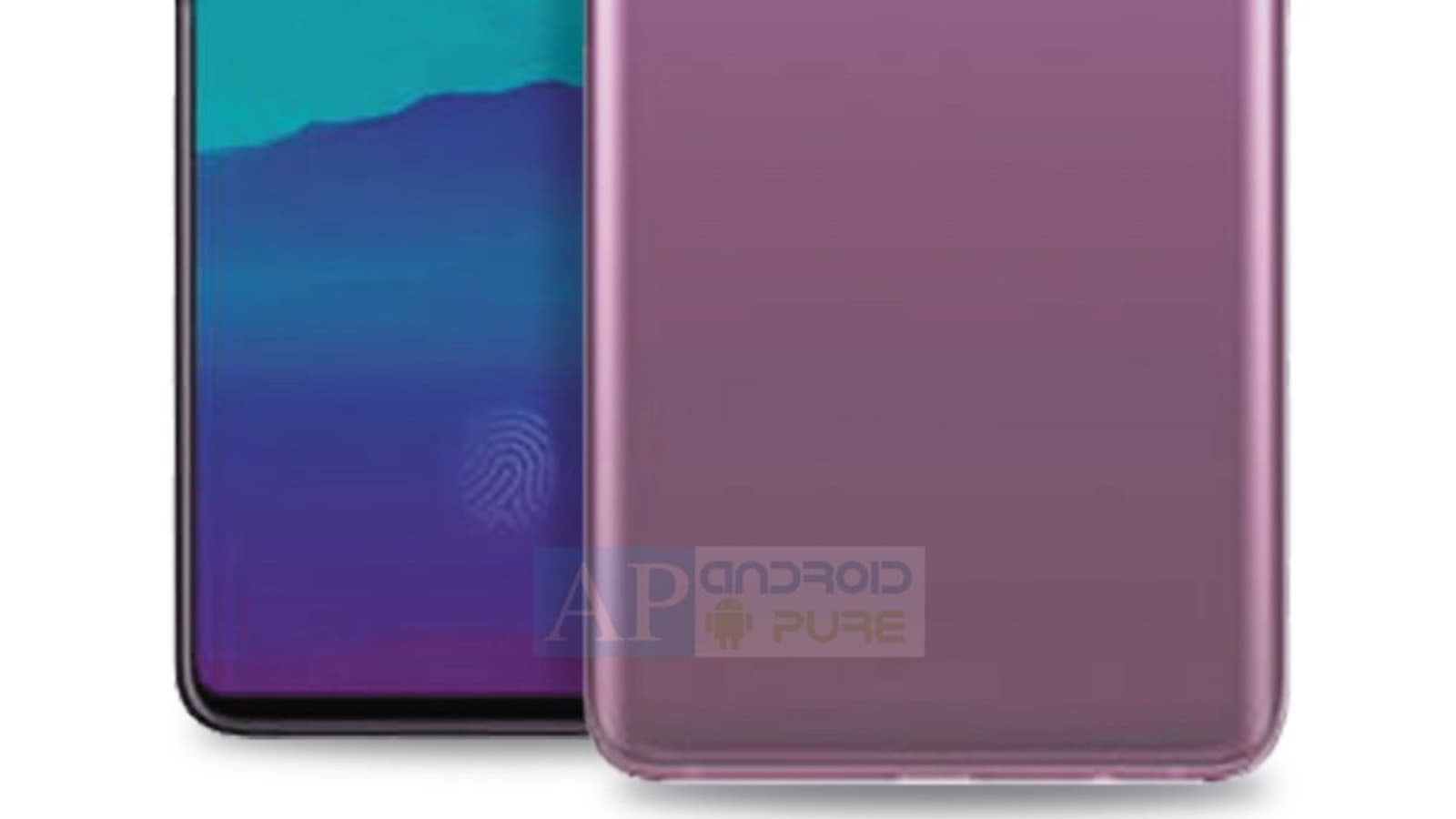 Samsung Galaxy A90 — первая модель компании с выдвижной фронтальной камерой. Поэтому на экране нет ни «врезок», ни вырезов. Сама фронталка не демонстрируется, но видно, что выдвижной модуль размещен ровно по центру верхней грани. Свободный от камеры дисплей занимает максимум площади фронтальной панели — явно больше 90%, хотя точные данные на этот счет появятся только после анонса. Также можно заметить, что сканер отпечатков пальцев интегрирован в дисплей.
