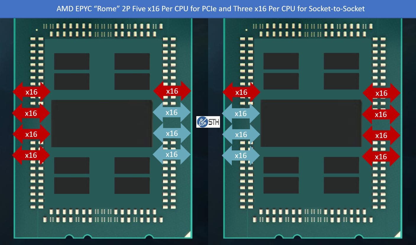 По данным одного прогноза, в AMD EPYC Rome будет поддерживать не 128, а 129 линий PCIe на процессор, что даст сумму из 162 линий для двухпроцессорной конфигурации. Правда, дополнительная линия отведена сервисному процессору управления платформой (BMC), так что доступно из будет меньше – 160.