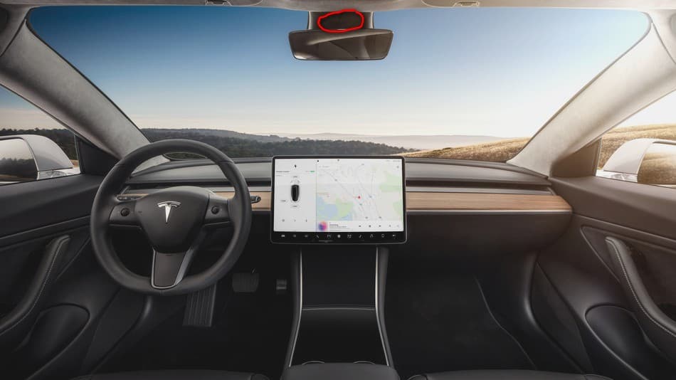 Салонную камеру в автомобиле Tesla Model 3 обнаружили ещё прошлым летом. Она располагается на креплении салонного зеркала заднего вида.