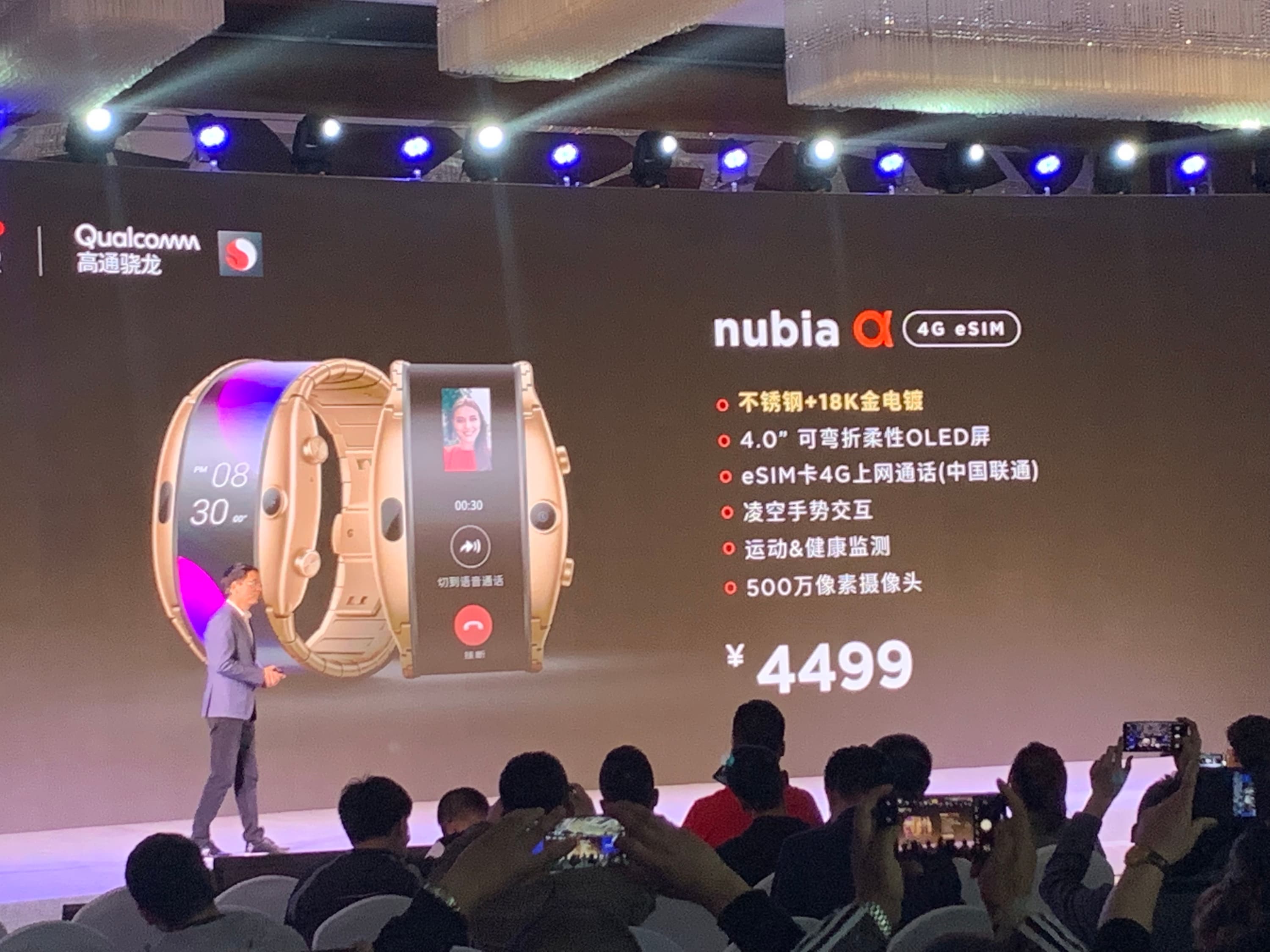 Сегодня в Китае состоялась официальная премьера коммерческой версии Nubia Alpha — устройства, объединяющего возможности умного браслета и смартфона. Новинку в Китае можно будет заказать уже с 10 апреля, стоимость — $520 за обычную версию или $670 за вариант в корпусе с покрытием 18-каратным золотом.