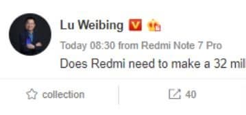 Следующий смартфон Redmi может получить фронтальную камеру разрешением 32 Мп