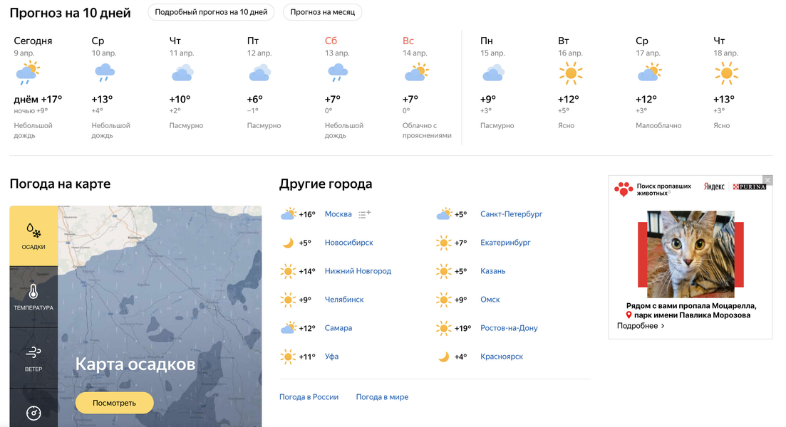 На сайте yandex.ru/petfinder можно разместить объявление с описанием и фотографией питомца, контактами для связи и районом, где был найден или потерян питомец. В итоге, объявление появится в сервисах и рекламной сети «Яндекса». Оно будет показываться пользователям, находящимся в указанном районе.